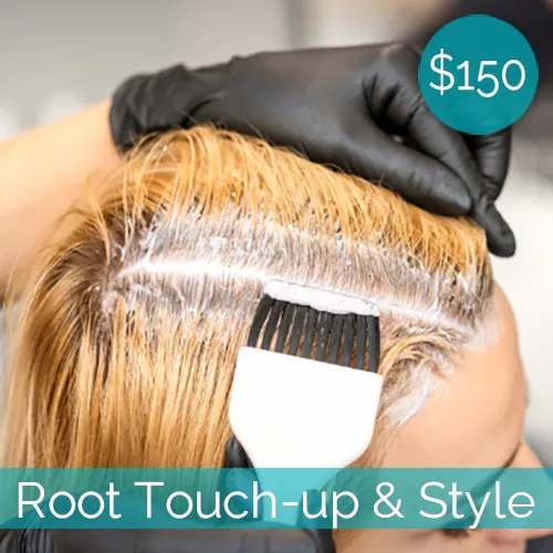 Enjoy 100% grey coverage, customized deep conditioning hair rituals that add shine, hydrate and eliminate frizz, followed by professional blow dry and style with hot tools for polished finish!